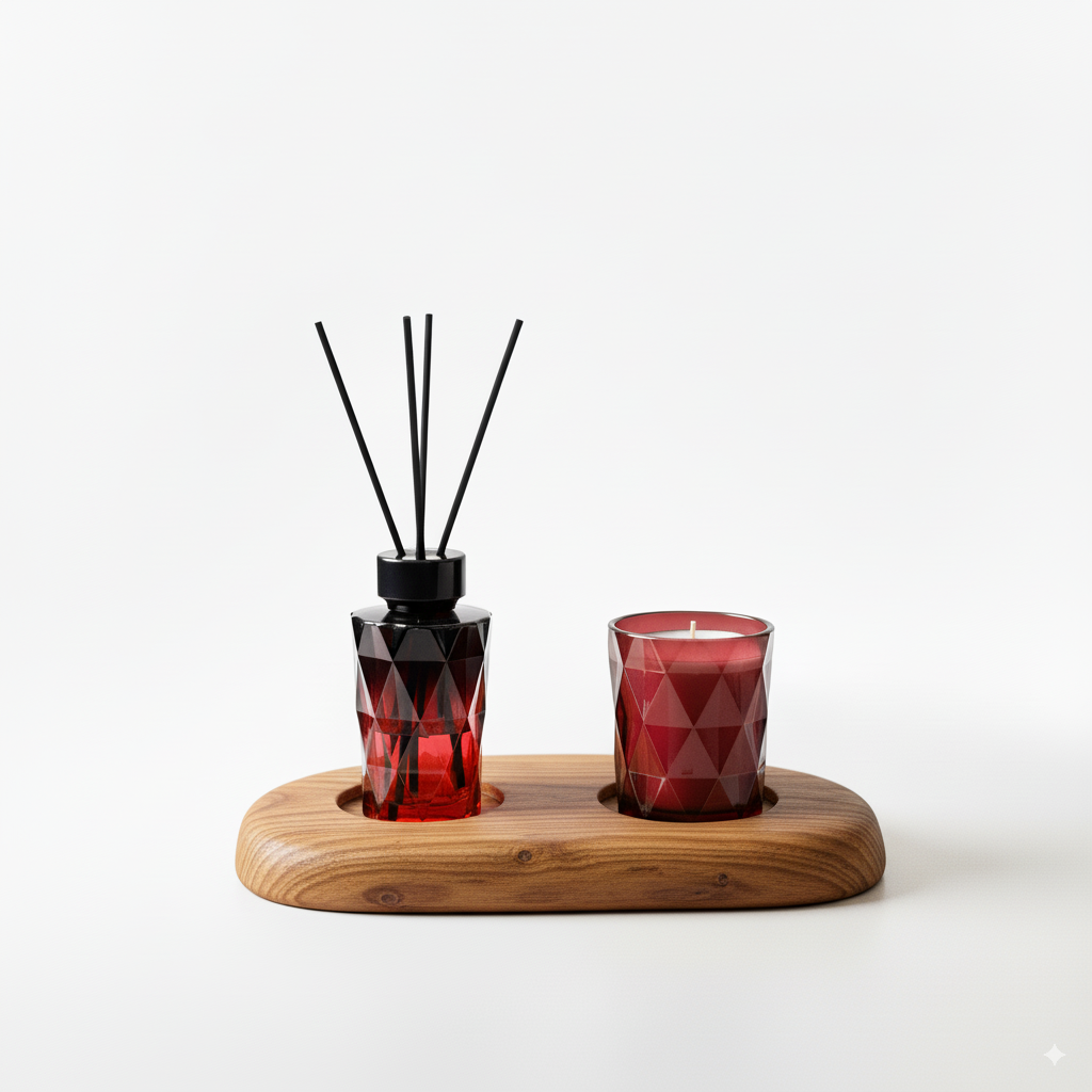 • Decorative Display Tray: A unique and striking two-part tray, featuring a raw, dark stone section on one side and a stunning, translucent purple geode-inspired section on the other. This tray serves as a perfect base for the diffuser and candle, adding an element of nature and artistry to your decor.